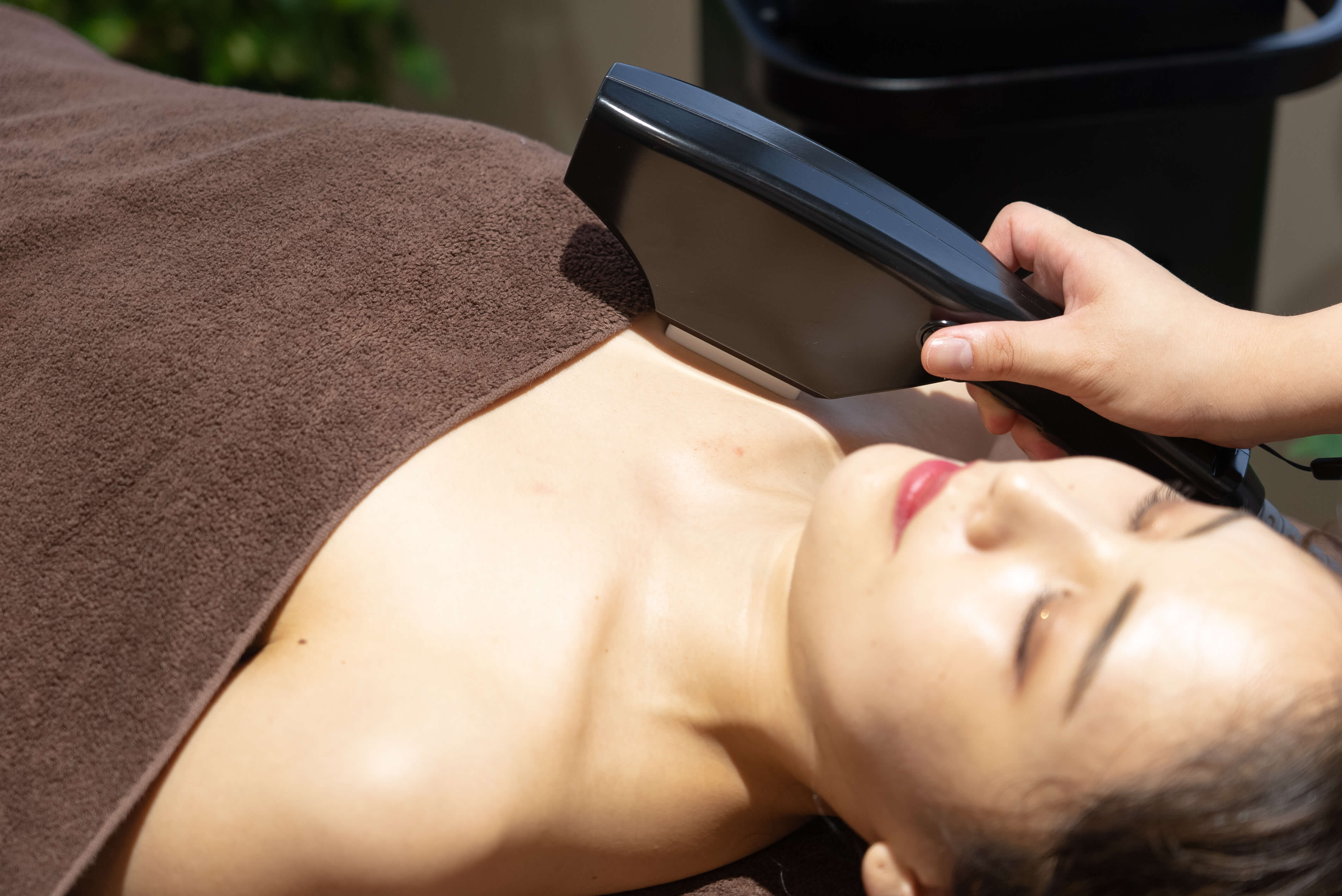 ハイブリット脱毛とは、お肌を最大-10°Cに冷却させながら、バルジ領域 と毛根部に特殊な光を照射することにより、お肌にやさしく安全に毛を再 生しづらくさせる最先端の方法です。